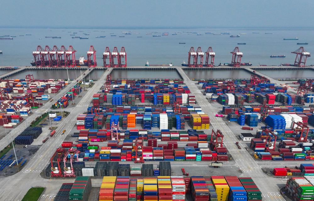 江蘇省蘇州港太倉港區(qū)集裝箱碼頭(無人機照片,10月10日攝)。新華社記者 李博 攝