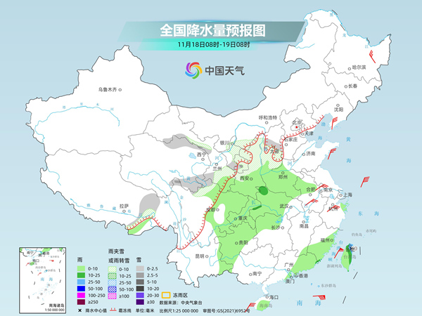具體來看,中央氣象臺預(yù)計,今天,內(nèi)蒙古河套地區(qū)、西藏東北部、青海北部和東南部、川西高原北部、甘肅河西和南部、寧夏大部、陜西中北部、山西中南部等地部分地區(qū)有小到中雪或雨夾雪。陜西南部、河南大部、安徽西部、湖北中西部、湖南北部、四川盆地、重慶、貴州大部、云南東部、福建東部和南部、廣東東部、海南島、臺灣島等地部分地區(qū)有小到中雨,其中,臺灣島東北部等地部分地區(qū)有大到暴雨。