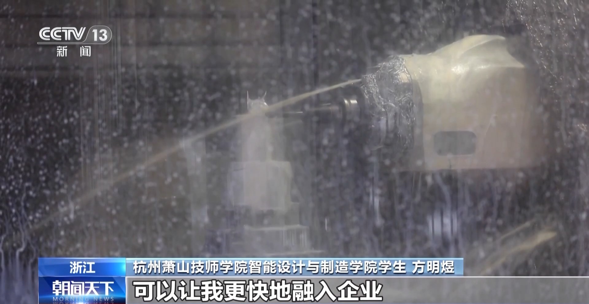 杭州蕭山技師學(xué)院智能設(shè)計(jì)與制造學(xué)院學(xué)生 方明煜:比如五軸加工中心以及智能產(chǎn)線、數(shù)字孿生等技術(shù),可以讓我更快融入企業(yè),更快上手。