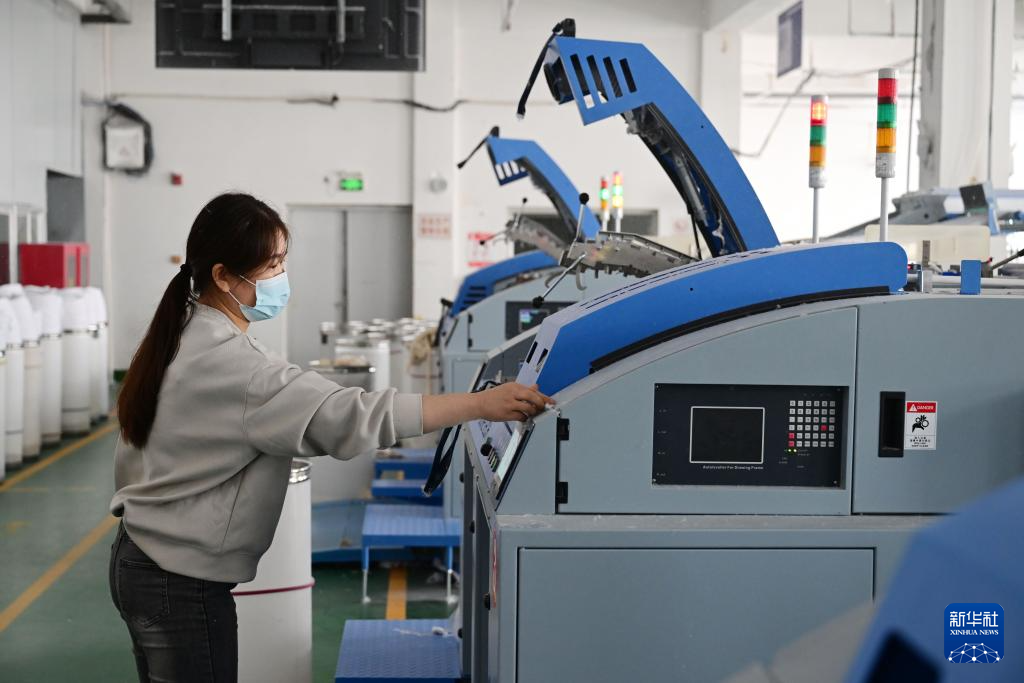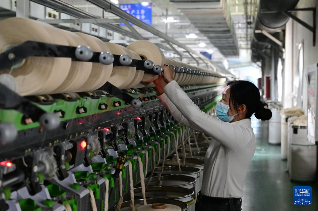 10月25日,工作人員在安徽省天助紡織科技集團(tuán)股份有限公司的生產(chǎn)車(chē)間里工作。新華社記者 周牧 攝