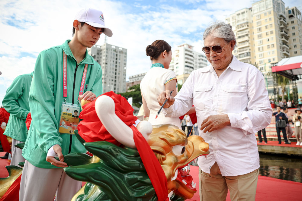 比賽開始前還舉行了龍舟巡游,巡游前的龍舟披紅點睛儀式,則既是預祝比賽順利進行,也彰顯對龍舟賽及傳統(tǒng)文化的重視。