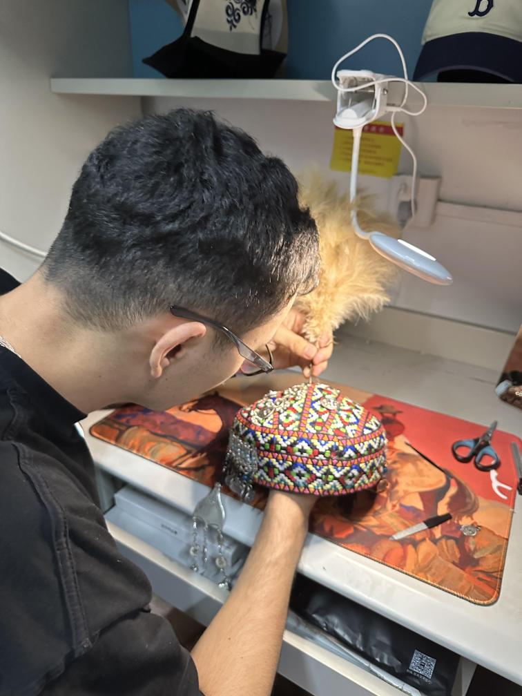 進入大學(xué)學(xué)習(xí)工業(yè)設(shè)計專業(yè)后,唐寶開始對第二批國家級非遺“哈薩克族服飾”為代表的民族傳統(tǒng)文化藝術(shù)有了更多思考。在老師們的支持下,他在學(xué)校成立了“哈薩克非遺工坊”,以建立數(shù)據(jù)庫的方式專注搜集設(shè)計、活化利用非遺傳承。
