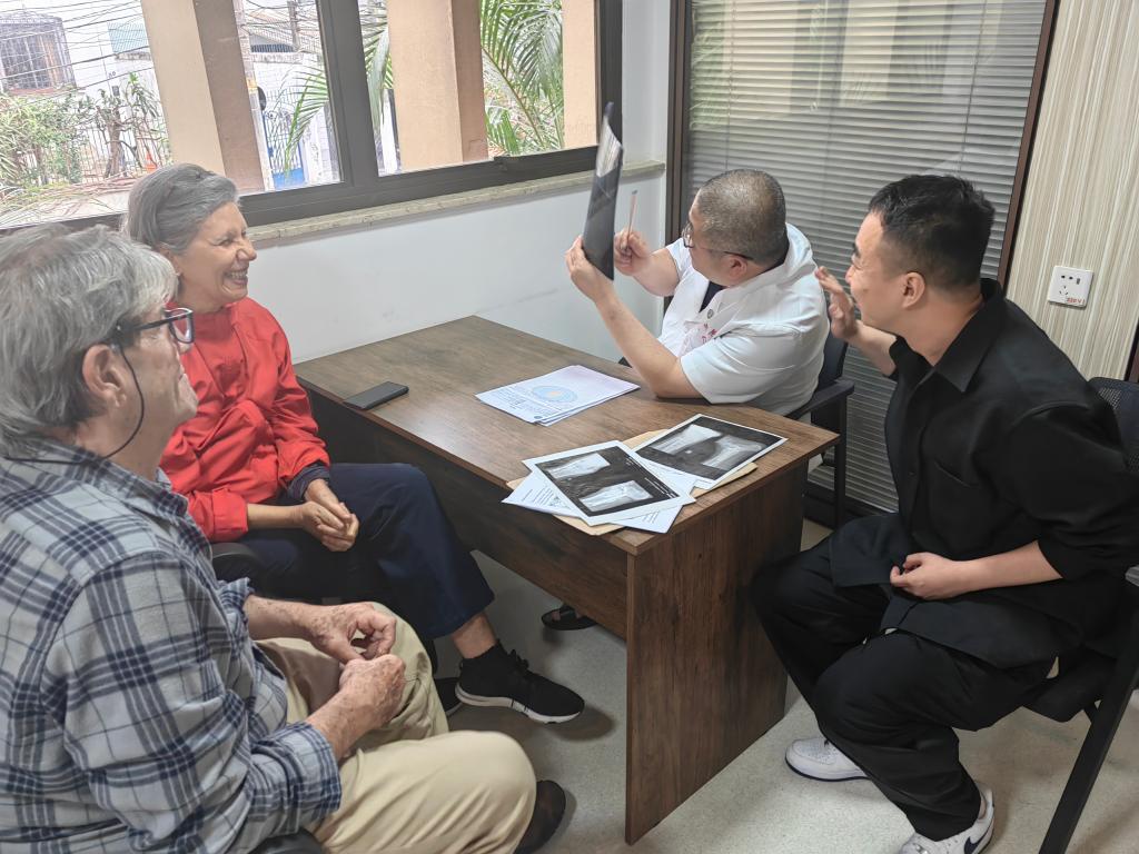 薛有平介紹,其實很多慢性疾病都可以通過針灸等中醫(yī)療法治療。一次義診中,他接診了一位肩背不適已經(jīng)2個多月的巴西患者。通過穴位和腹部觸診,薛有平確診病人為慢性胰腺炎,指導(dǎo)病人控制飲食后痊愈。