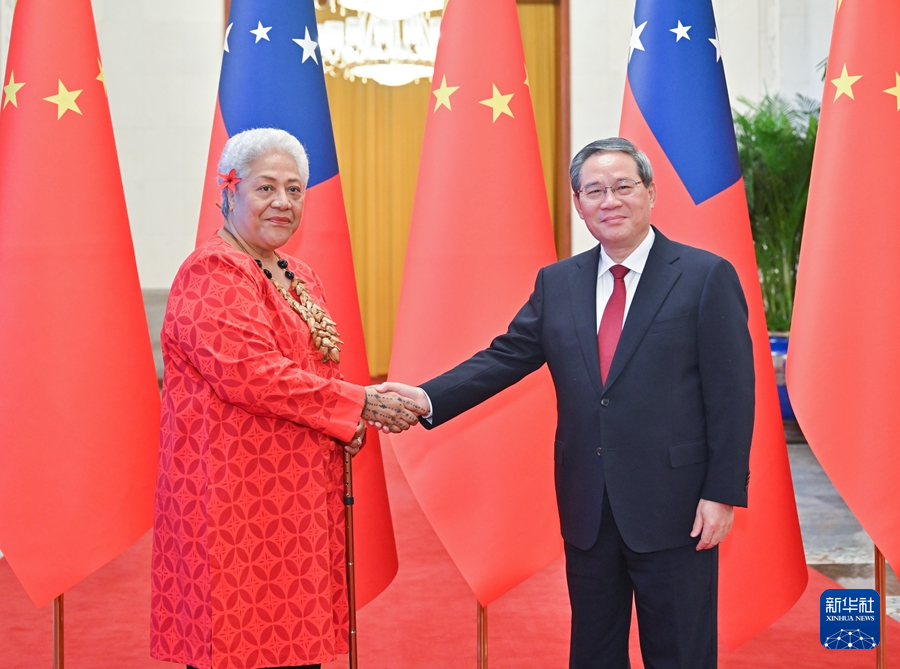 新華社北京11月26日電 國務院總理李強11月26日上午在北京人民大會堂同來華進行正式訪問的薩摩亞總理菲婭梅舉行會談。