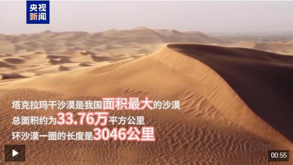 塔克拉瑪干沙漠,是我國面積最大的沙漠,總面積約為33.76萬平方公里,環(huán)沙漠一圈的長度是3046公里。