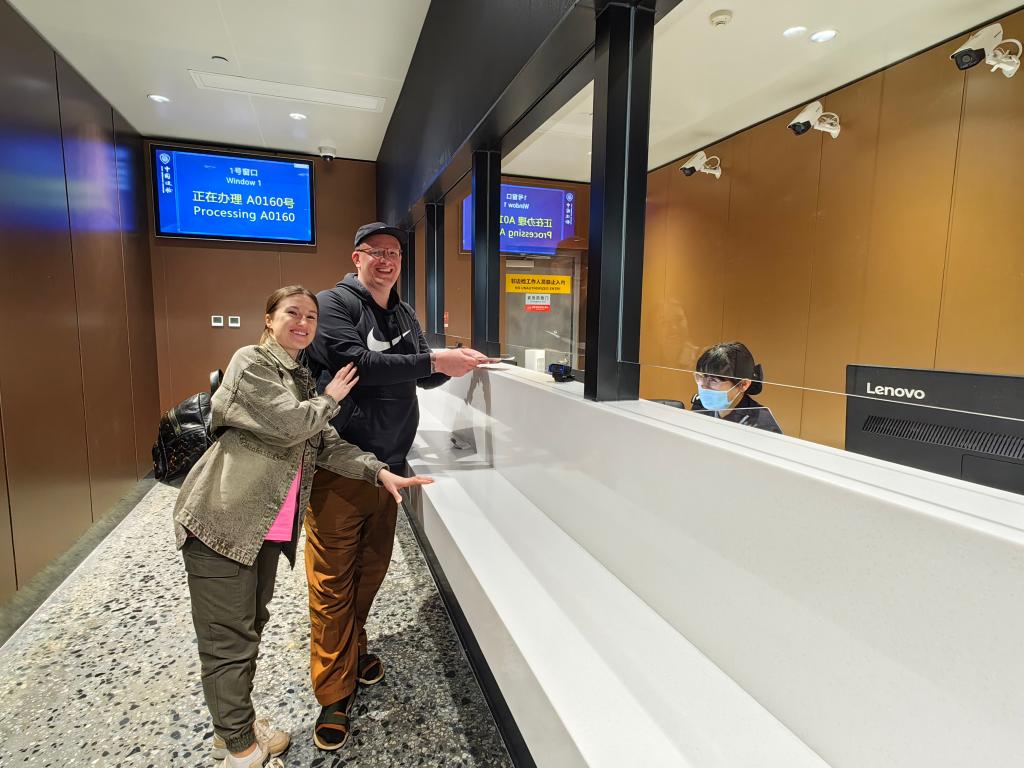 11月24日,正在辦理144小時(shí)過(guò)境免簽手續(xù)的俄羅斯旅客。(北京大興機(jī)場(chǎng)邊檢站供圖)