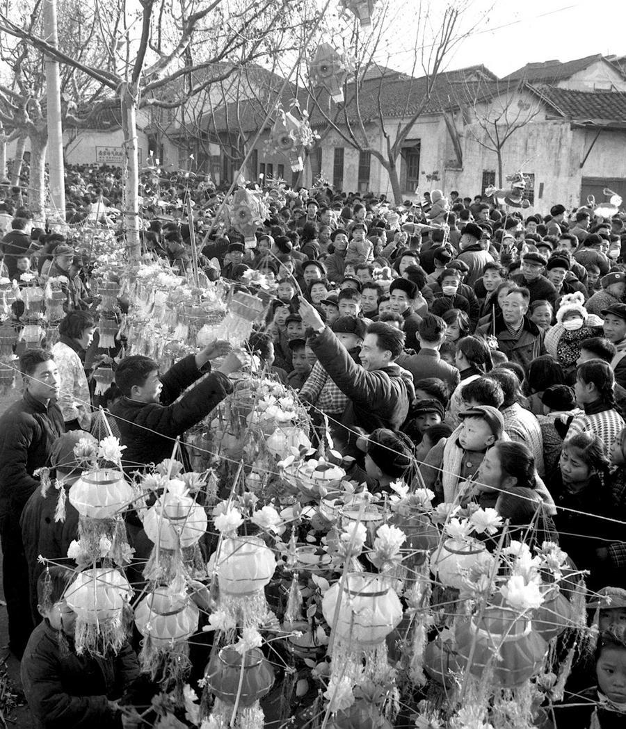 1966年春節(jié),江蘇南京市民在夫子廟選購(gòu)花燈。 新華社記者 汪文華 攝