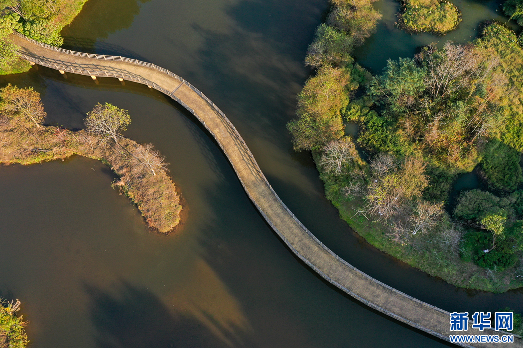 這是長汀汀江國家濕地公園冬日景觀。如今這里是國家4A級(jí)旅游景區(qū)。經(jīng)過30多年的生態(tài)治理,昔日水土流失重災(zāi)區(qū)已成為風(fēng)光秀麗、林果連片的生態(tài)旅游勝地(無人機(jī)照片)。新華網(wǎng) 肖和勇 攝