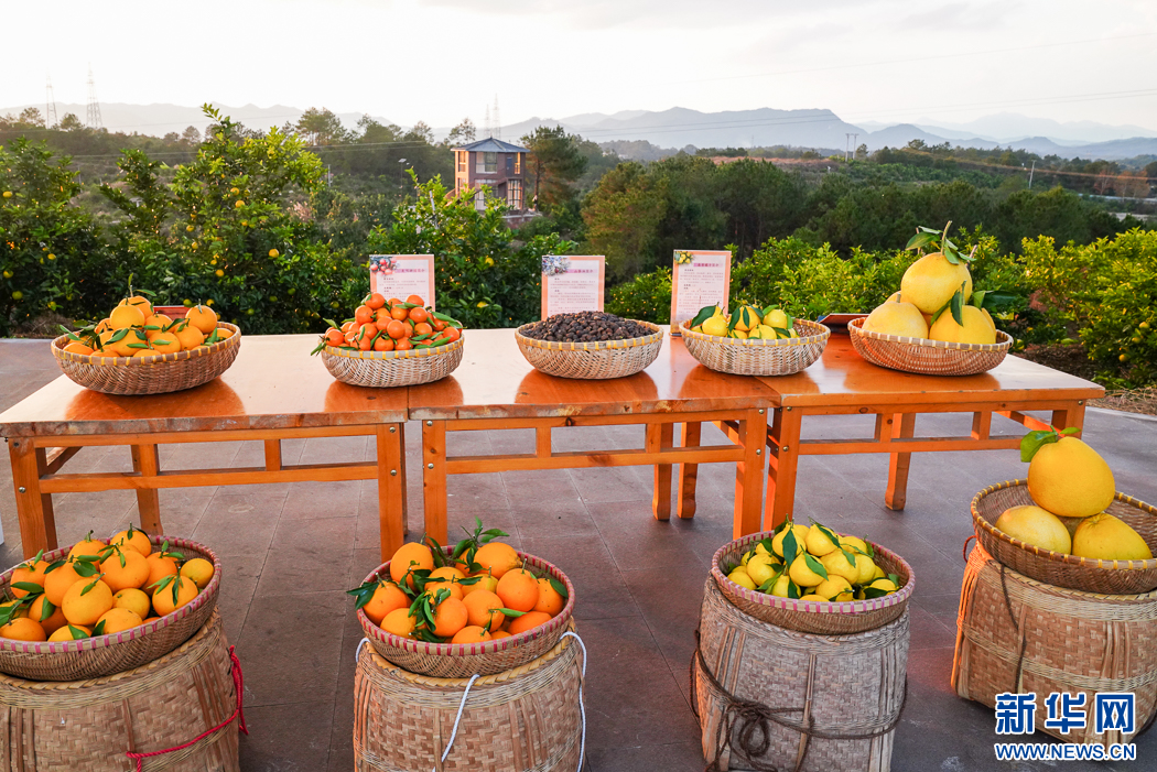 長汀縣三洲鎮(zhèn)豐盈美麗生態(tài)農(nóng)場(chǎng)面積3200多畝,已種植36個(gè)果樹品種,這是當(dāng)季水果展示。新華網(wǎng) 肖和勇 攝
