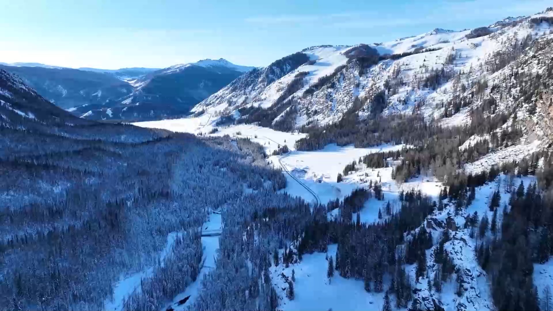 阿禾公路開通后,阿勒泰市至禾木景區(qū)的行程從6小時(shí)縮短至3小時(shí)。這一路猶如“油畫長(zhǎng)廊”,游客可以目睹高山、森林、草原、湖泊、河流、濕地、峽谷、石林、古冰川遺跡等眾多自然景觀。冬日的阿禾公路有別樣的風(fēng)景,山路蜿蜒曲折,路兩旁是白雪皚皚的高山,錯(cuò)落有致的原始森林,還有陽(yáng)光下晶瑩閃爍的雪原。