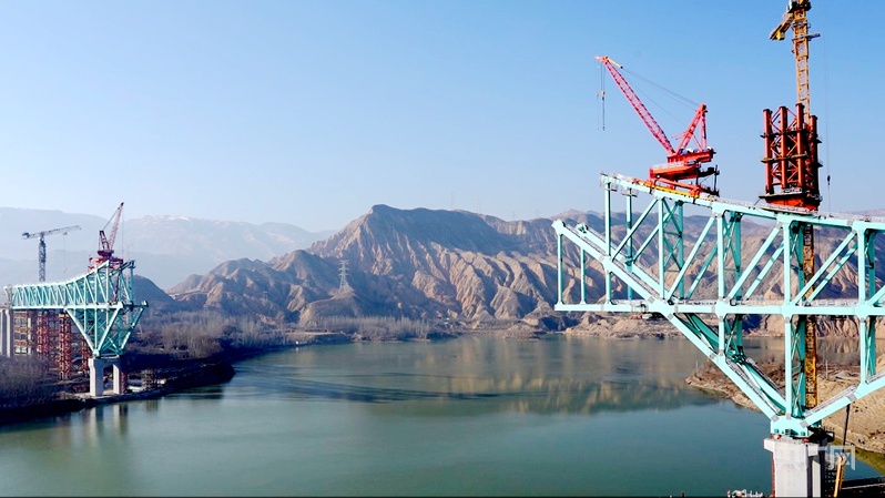 冬日里,記者走進(jìn)川青鐵路重點(diǎn)建設(shè)項(xiàng)目尖扎黃河特大橋的施工現(xiàn)場(chǎng),工作人員正在緊鑼密鼓推進(jìn)工程建設(shè)。