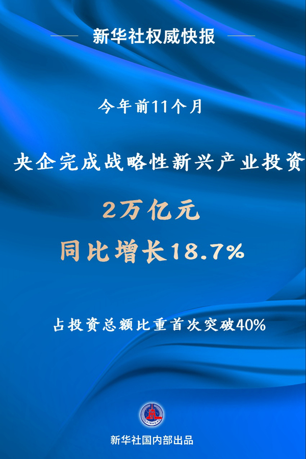 今年以來,中央企業(yè)堅守實體經濟,在新興產業(yè)的布局節(jié)奏加快,1至11月完成戰(zhàn)略性新興產業(yè)投資2萬億元,同比增長18.7%,占投資總額比重首次突破40%。