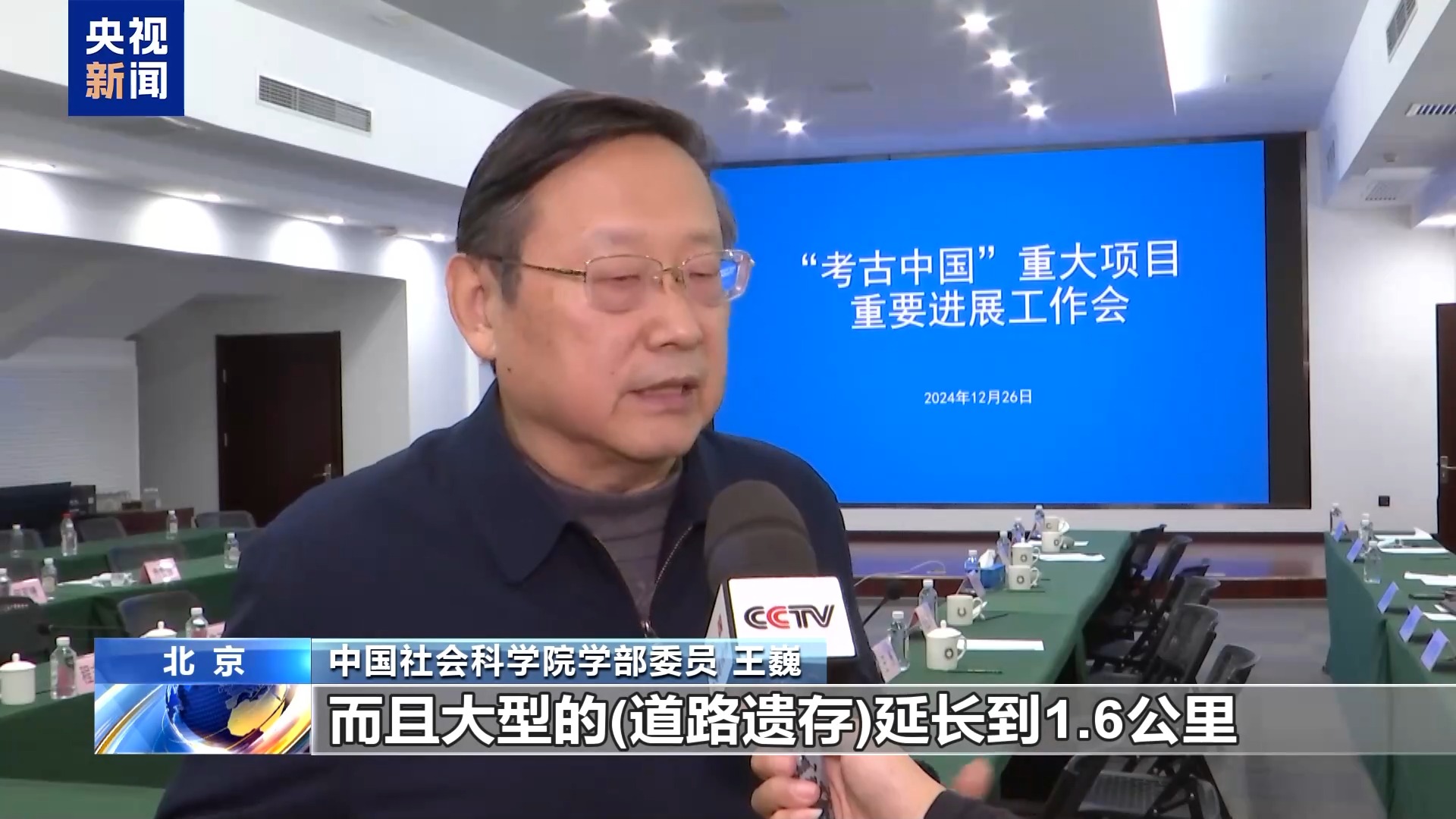 中國社會科學(xué)院學(xué)部委員 王巍:殷墟原來我們工作主要集中在洹河南岸,大量甲骨發(fā)現(xiàn)等。在西北岡王陵以東的區(qū)域,基本是空白的。但是發(fā)現(xiàn)了三橫三豎的道路網(wǎng)絡(luò),而且大型的道路遺存延長到1.6公里,讓我們完全改寫了對殷墟布局的認(rèn)識。