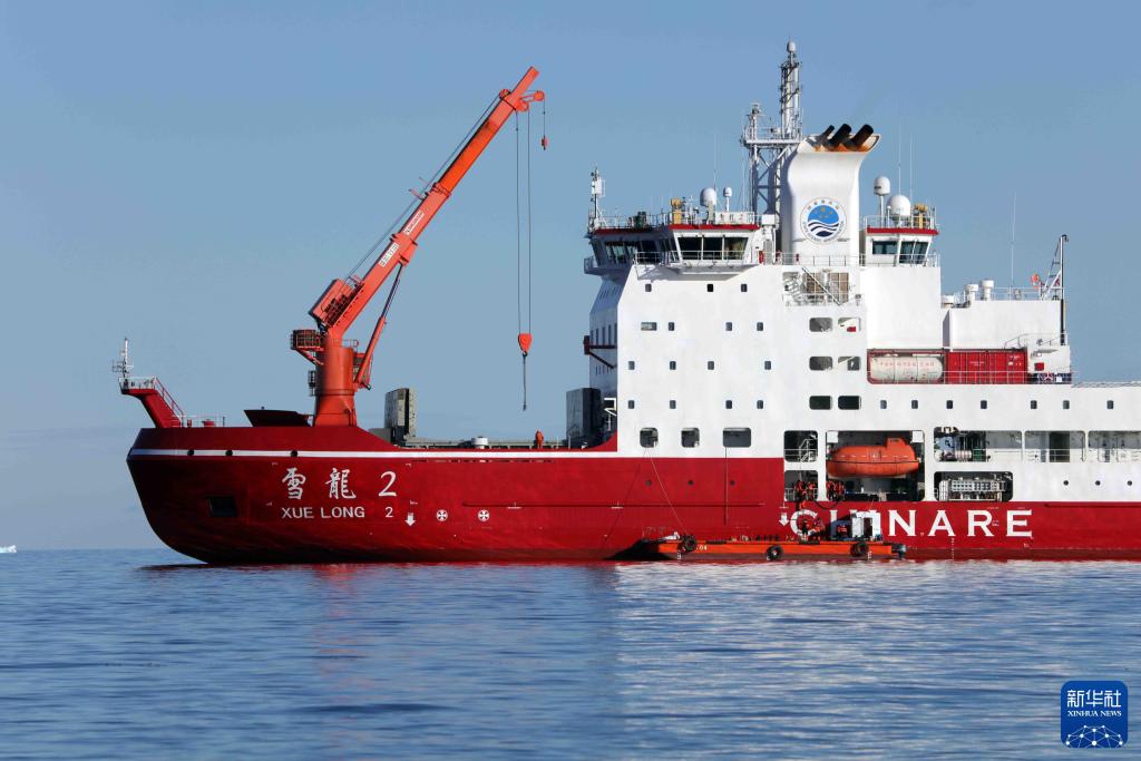 2024年12月27日,執(zhí)行中國第41次南極考察任務(wù)的“雪龍2”號(hào)極地科考破冰船在南極秦嶺站海域卸貨。新華社記者 黃韜銘 攝