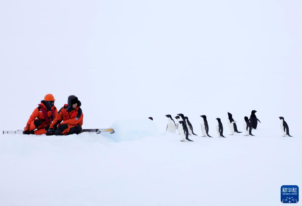 2024年12月8日,第41次南極考察隊(duì)員吸引了企鵝前來“圍觀”。 新華社記者 黃韜銘 攝