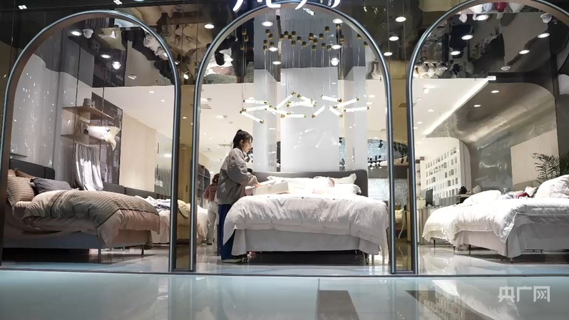 疊石橋家紡城內(nèi)店員整理家紡產(chǎn)品(央廣網(wǎng)記者 楊夢奎 攝)