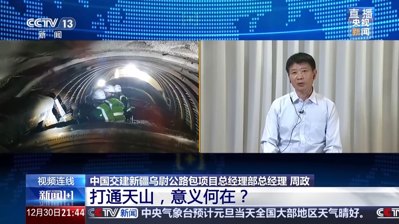 中國(guó)交建新疆烏尉公路包項(xiàng)目總經(jīng)理部總經(jīng)理 周政:對(duì),我們洞口最低溫度能到零下40多攝氏度。前幾天還是零下35攝氏度。今天我們?cè)谏缴?,白天也有零?0攝氏度左右。