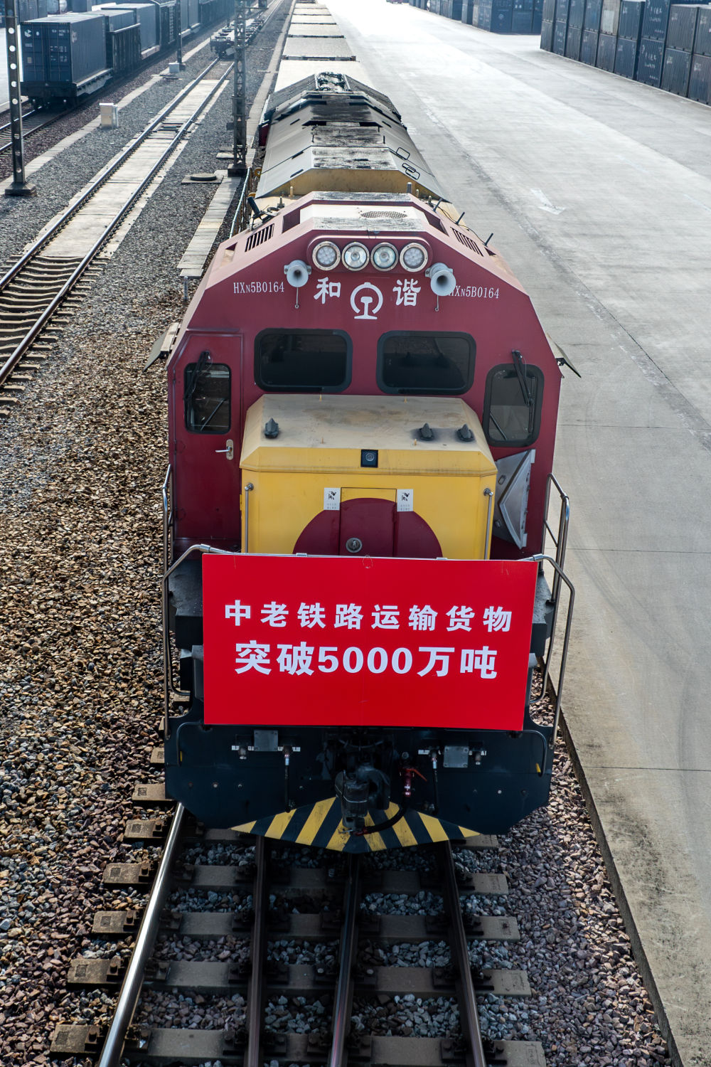 這標(biāo)志著自2021年12月3日全線開通運(yùn)營以來,中老鐵路貨物運(yùn)輸總量突破5000萬噸大關(guān),其中跨境貨物1158萬噸。2024年,中老鐵路運(yùn)輸貨物總量達(dá)1960萬噸,日均保持在5萬噸以上。