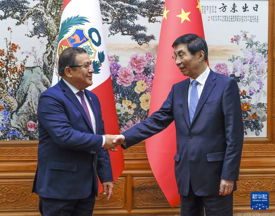 全國政協(xié)主席王滬寧6日在京會見秘魯國會主席薩盧安納。