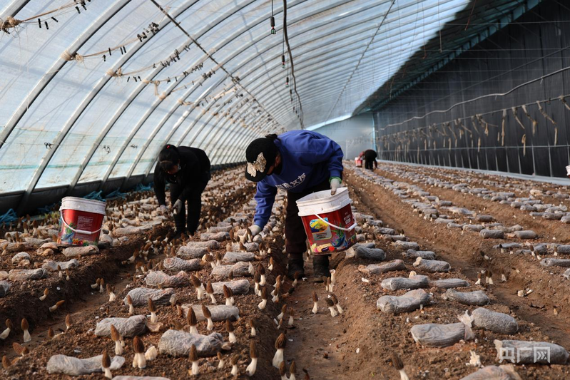 務工者在采收羊肚菌(央廣網(wǎng)發(fā) 胡建華 攝)