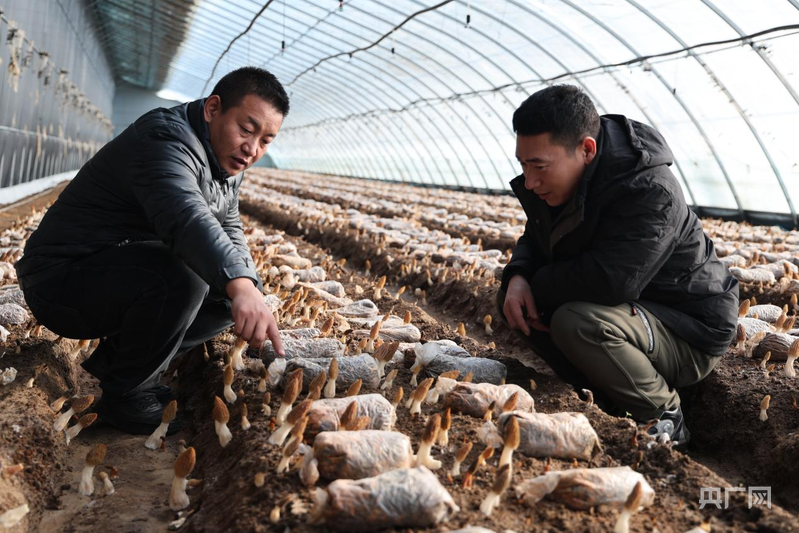 鄭福來(右)向鎮(zhèn)干部介紹羊肚菌(央廣網(wǎng)發(fā) 邵云哲 攝)
