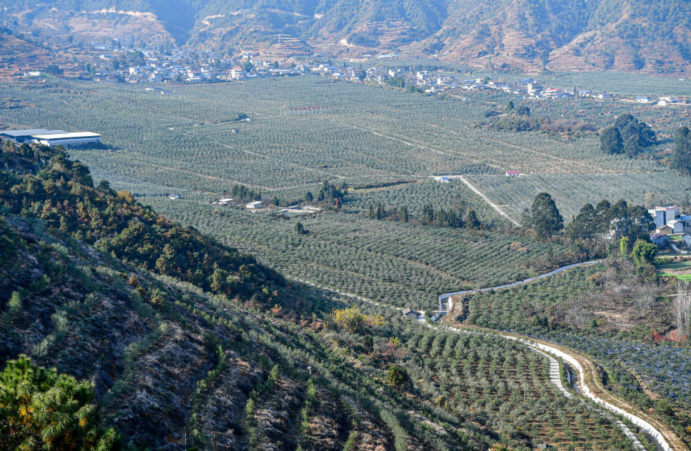 在四川冕寧縣宏模鎮(zhèn)油橄欖現(xiàn)代林業(yè)園區(qū)里,連片的油橄欖林形成產(chǎn)業(yè)規(guī)模效應(yīng)(2024年12月12日攝)。