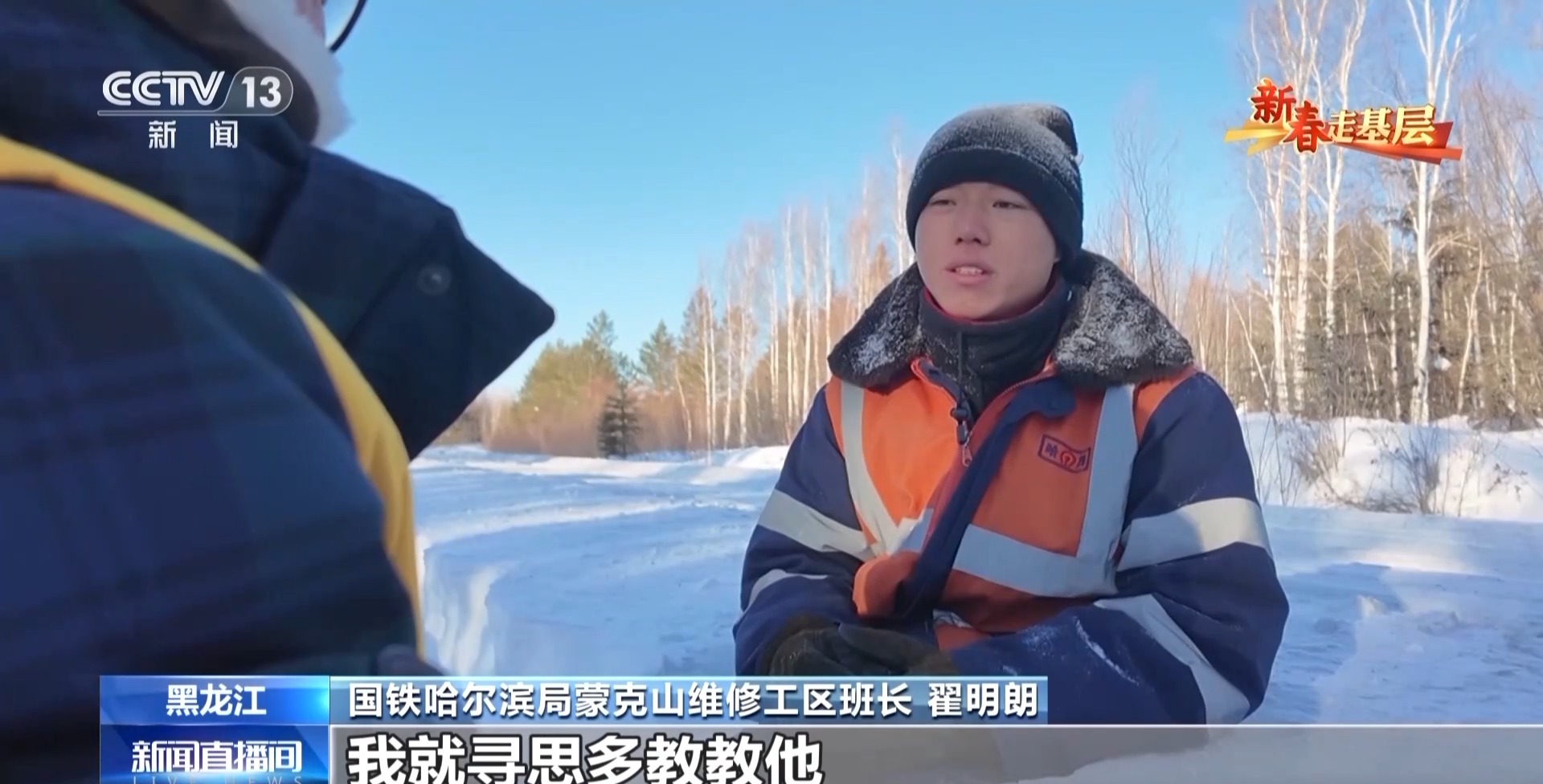 國鐵哈爾濱局蒙克山維修工區(qū)班長 翟明朗:就覺得他從大西北來到大東北,遠(yuǎn)離親人,也挺心疼他的,我就尋思多教教他,讓他少走一些彎路。