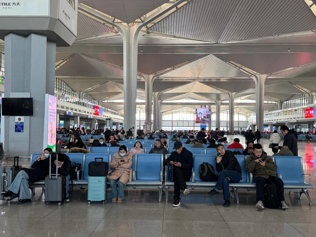 1月17日,乘客帶著行李在太原南站候車。新華社記者 王學濤 攝