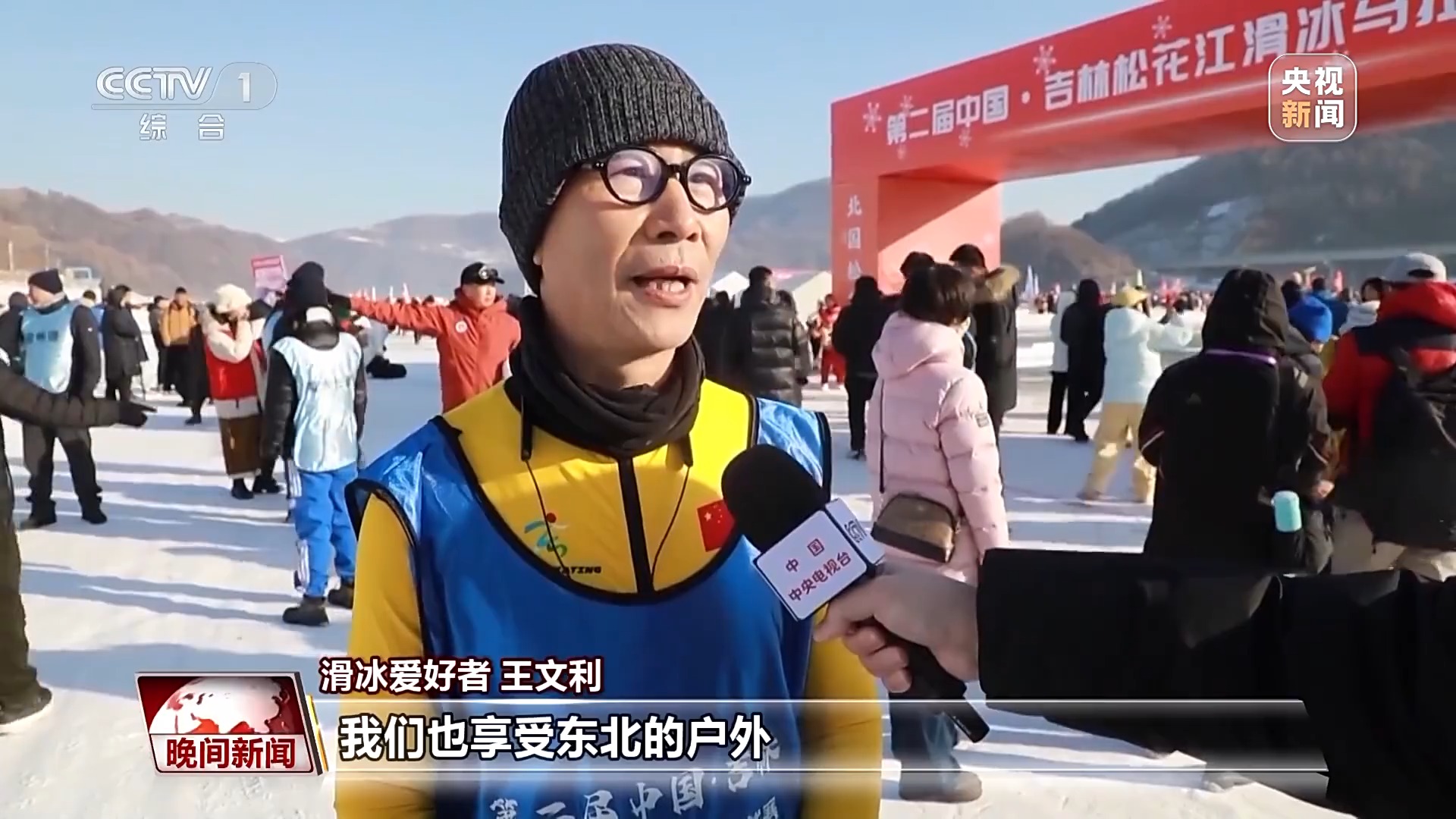 滑冰愛好者 王文利:我們也享受東北的戶外,因?yàn)椴坏綉敉饣透鷽]感受到過冬一樣。