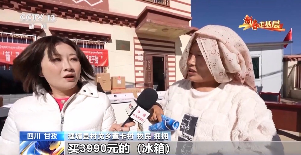 理塘縣村戈鄉(xiāng)查卡村 牧民 擁擁:買3990元的冰箱,準(zhǔn)備帶回去,高興,補800多元就可以了。