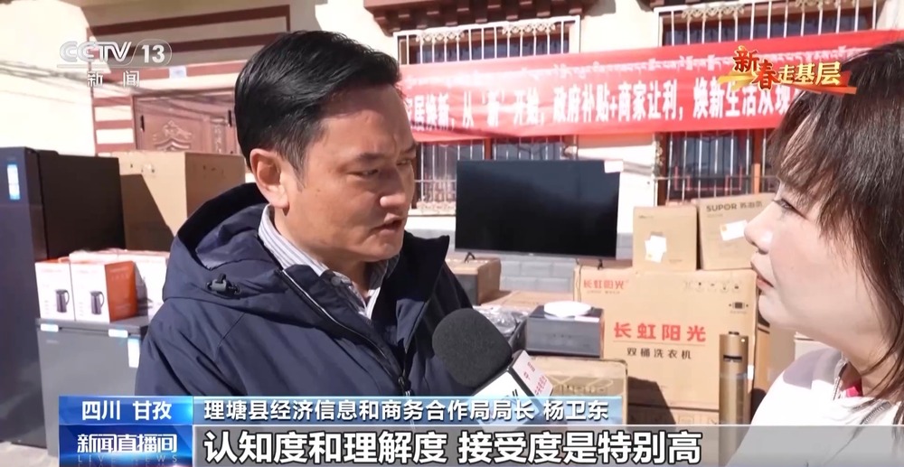 理塘縣經(jīng)濟信息和商務(wù)合作局局長 楊衛(wèi)東:老百姓對以舊換新認知度和理解度、接受度特別高,現(xiàn)在家電普及率達到80%以上,家電銷售的數(shù)量比往年增長30%以上。