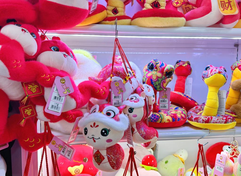農歷乙巳蛇年將至,結合生肖主題,陸慶榮與團隊早在去年七、八月就敲定了三十多個品種的款式設計,而十一月、十二月便是出貨銷售的高峰期,每天能賣出約兩萬只毛絨玩具。其中,“福寶蛇”和布藝蛇玩具是“人氣王”。