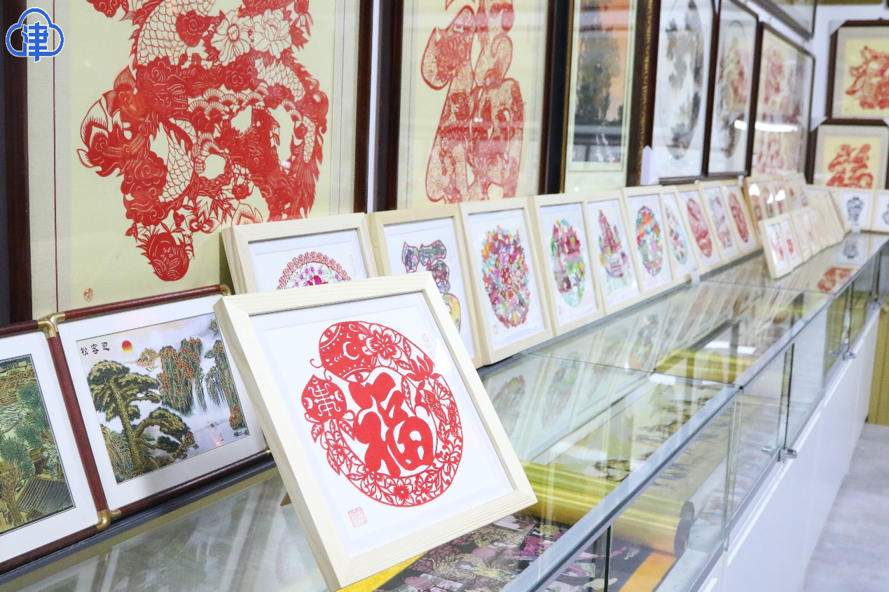在戲樓對面,楊柳青剪紙世家第四代傳人,郝桂芬的剪紙鋪吸引了眾多游客的駐足。郝桂芬既是店鋪的“當家人”,也是非遺剪紙項目的代表性傳承人。楊柳青剪紙的技法,既需要用北方剪刀剪出輪廓,又需要用南方刻刀雕飾細節(jié)。郝桂芬的獨門絕技——染色剪紙,是先用白紙剪出樣式,再用楊柳青年畫的技法上色。她的剪紙作品包括花鳥魚蟲、神話故事、喜慶吉祥圖案等,深受游客喜愛。在這里,游客們不僅可以購買到精美的剪紙作品,還能在學習體驗剪紙技法,感受指尖上的古老藝術。