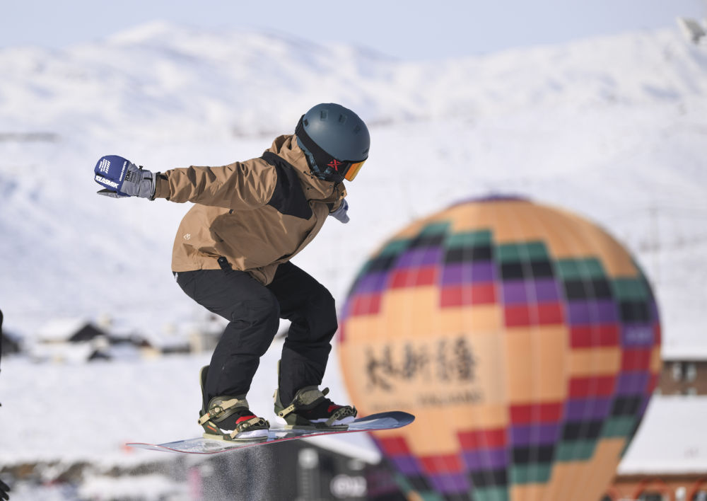 1月25日,游客在阿勒泰市將軍山國際滑雪度假區(qū)滑雪。