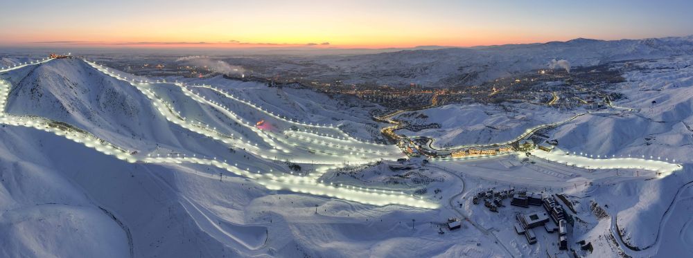 黃昏時分的將軍山國際滑雪度假區(qū)(1月24日攝,無人機照片)。