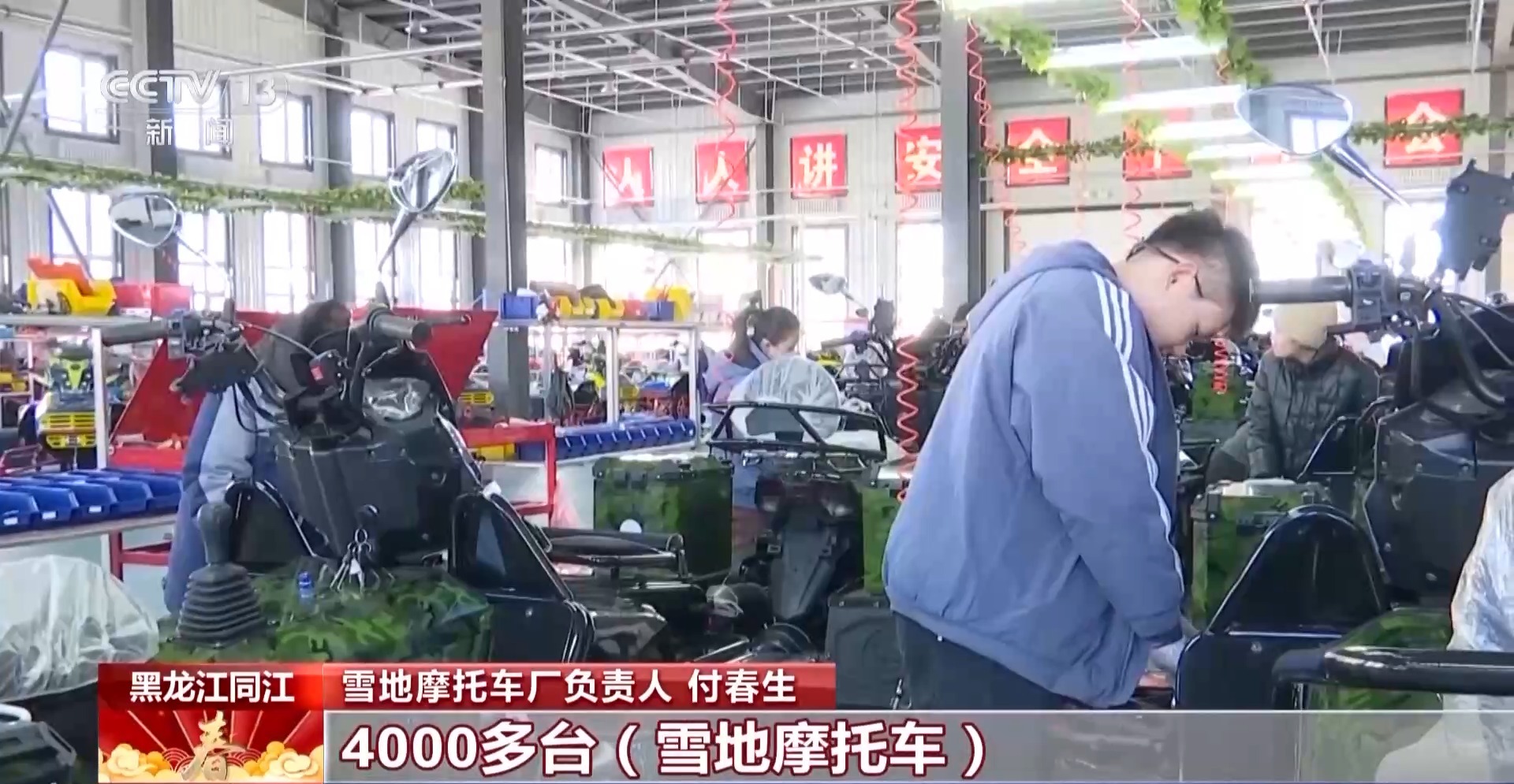雪地摩托車廠負責(zé)人 付春生:去年我們接了很多訂單,2025年訂單我們已經(jīng)接4000多臺雪地摩托車了,其中國外的是3000多臺,主要是俄羅斯,還有東歐國家。