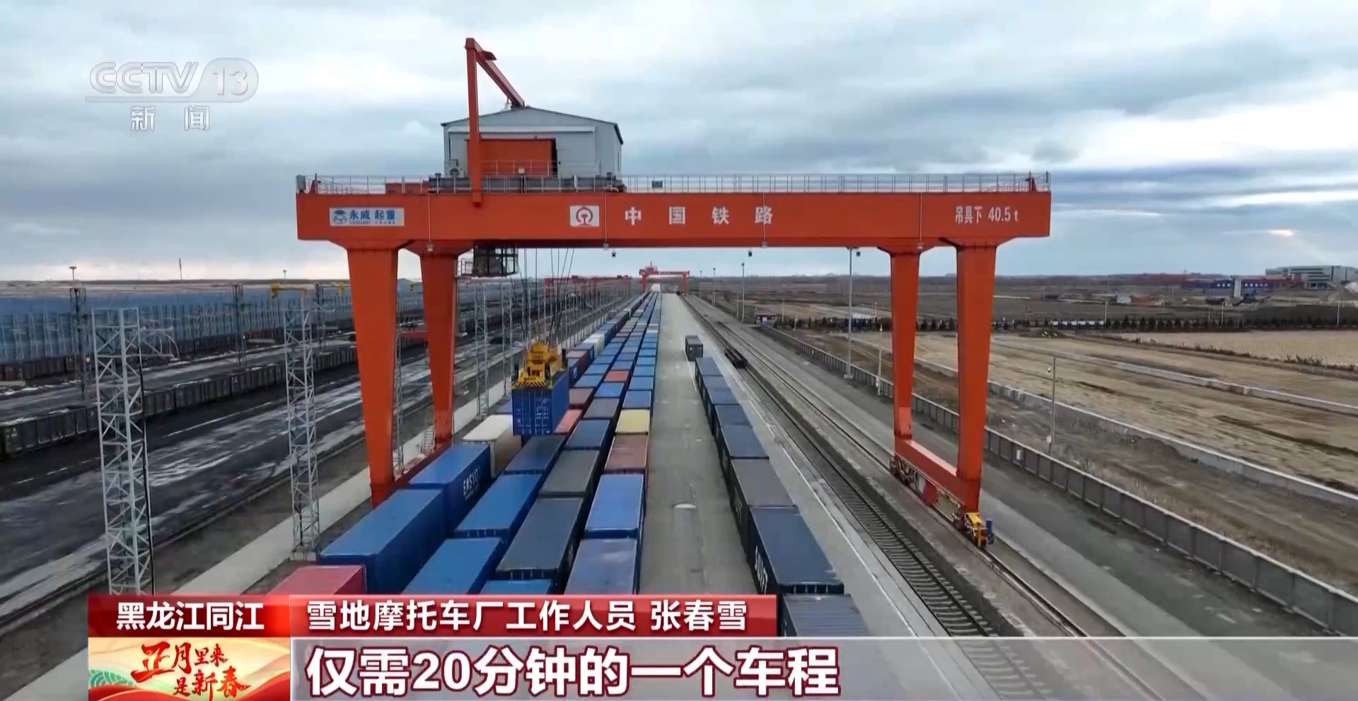 雪地摩托車廠工作人員 張春雪:工廠的產(chǎn)品從生產(chǎn)裝車,到咱們對岸的是俄羅斯的下列寧斯闊耶口岸,僅需20分鐘的車程。