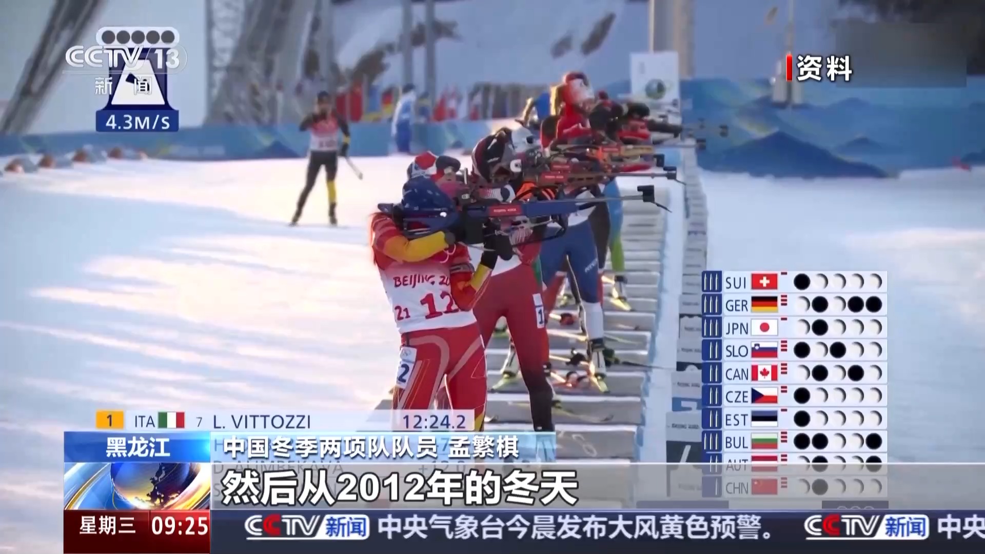 中國冬季兩項隊射擊教練 李辰揚:從前兩年開始比賽的時候,可能說是全國只有五六個隊,到現(xiàn)在已經(jīng)開始有十幾支隊伍了,成績也已經(jīng)開始逐步在提高了?;旧犀F(xiàn)在年輕的后備力量還是非常多的。