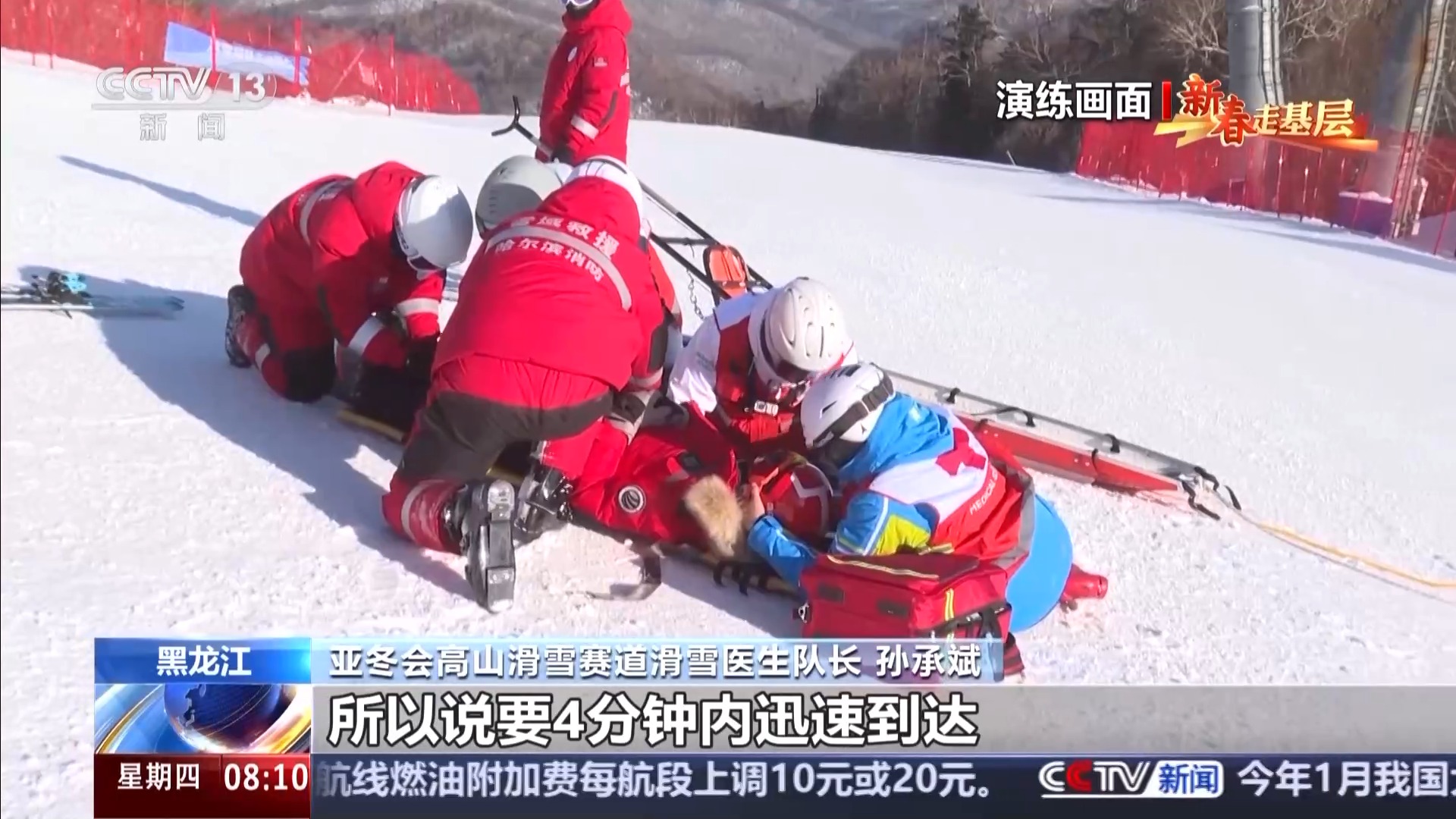 亞冬會(huì)滑雪醫(yī)生領(lǐng)隊(duì) 潘海樂(lè):經(jīng)過(guò)一年的非??炭嗟挠?xùn)練,我覺(jué)得現(xiàn)在應(yīng)該都具備了真正賽場(chǎng)保障的能力,但是還需要真正的賽場(chǎng)大考來(lái)把成色再驗(yàn)一驗(yàn),就是我們?cè)趺茨軌螯S金4分鐘處理好,成敗就在這4分鐘。