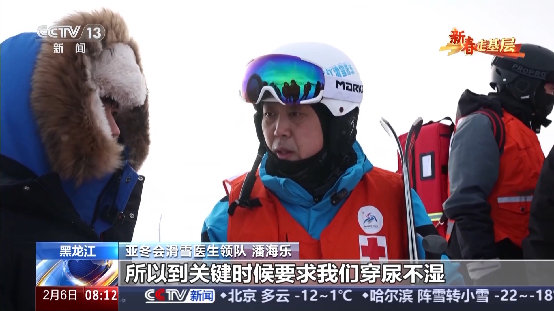 亞冬會(huì)滑雪醫(yī)生領(lǐng)隊(duì) 潘海樂(lè):我們正規(guī)保障高坡度的這些滑雪醫(yī)生要保障四五個(gè)小時(shí)都不能動(dòng),所以到關(guān)鍵時(shí)候要求我們穿帶尿不濕。