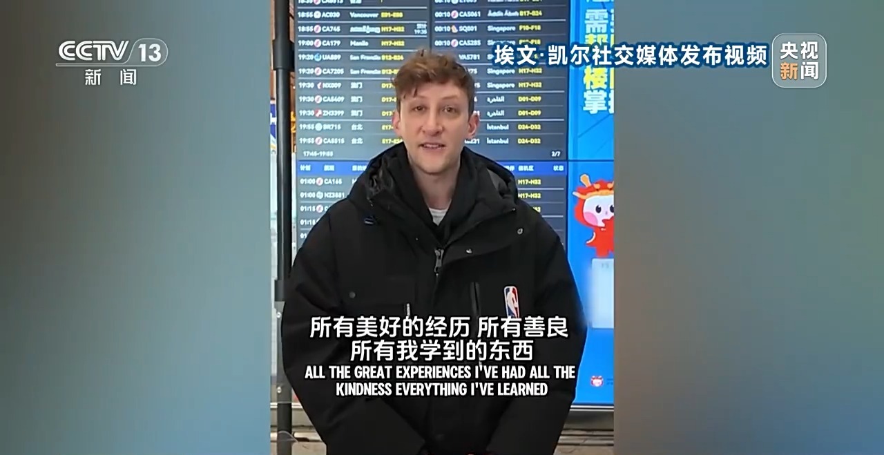 幾天前,埃文·凱爾暫別中國,難掩不舍之情,他說中國已經(jīng)成為他第二個家。
