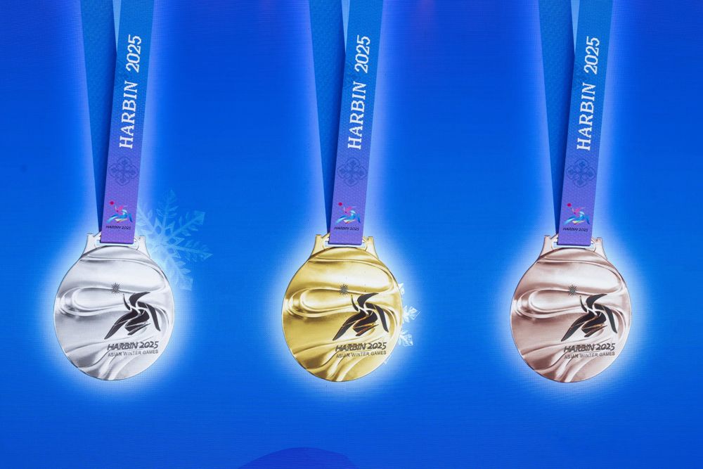 這是亞冬會(huì)獎(jiǎng)牌“競(jìng)速精神”的正面(2024年10月30日攝)。