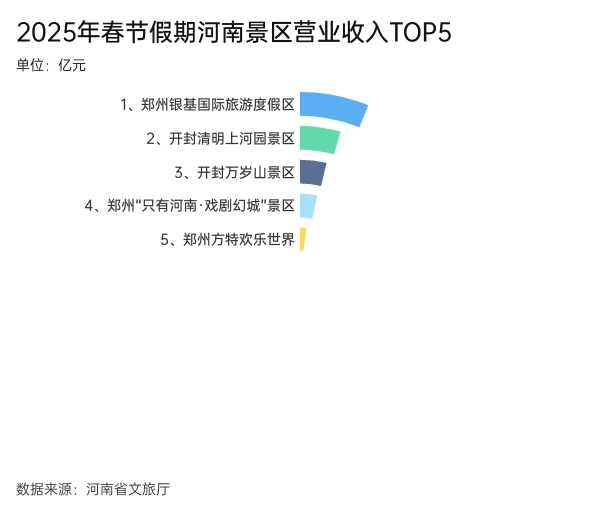 河南省文旅廳數(shù)據(jù)顯示,春節(jié)假期八天,全省營收上億元的景區(qū)僅有兩家,分別是鄭州銀基國際旅游度假區(qū)1.43億元,開封清明上河園景區(qū)1.03億元。