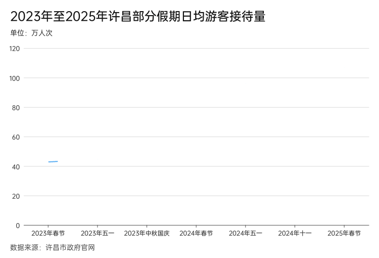許昌市政府官網(wǎng)數(shù)據(jù)顯示,2023年下半年以來,主要節(jié)假日期間,全市日均游客接待量保持在100萬人次左右。