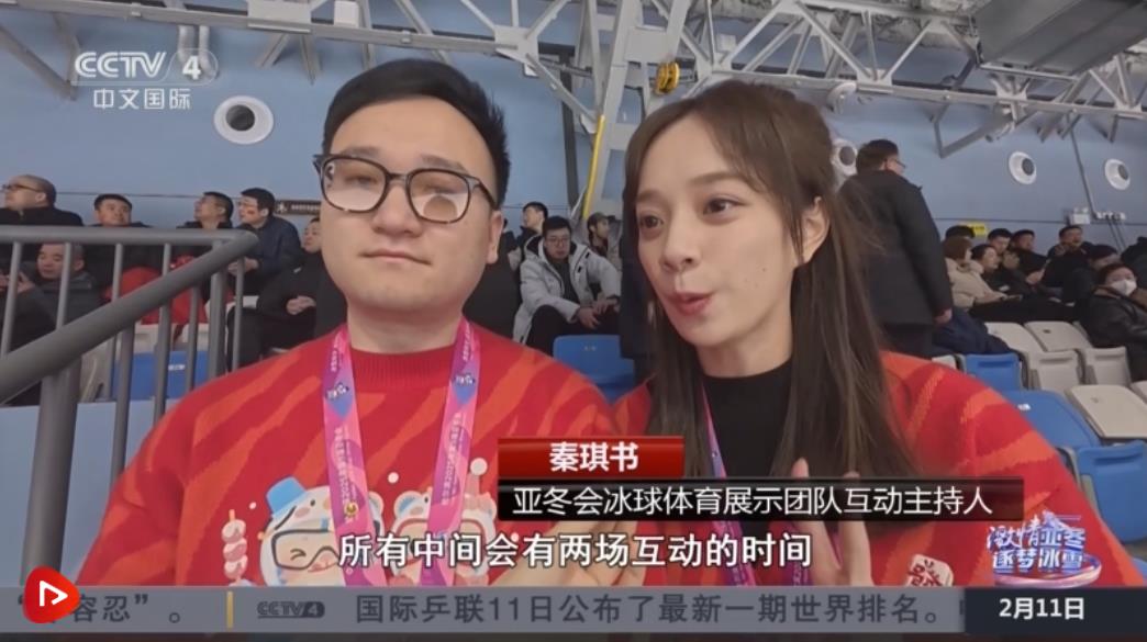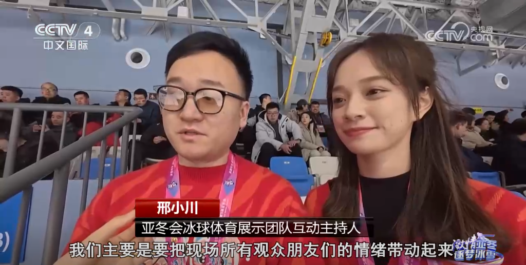 亞冬會冰球體育展示團(tuán)隊互動主持人邢小川介紹,他們主要是帶動所有觀眾朋友的情緒,給大家營造濃郁的現(xiàn)場氛圍,可以通過大屏幕互動,給大家?guī)砀玫挠^賽體驗。