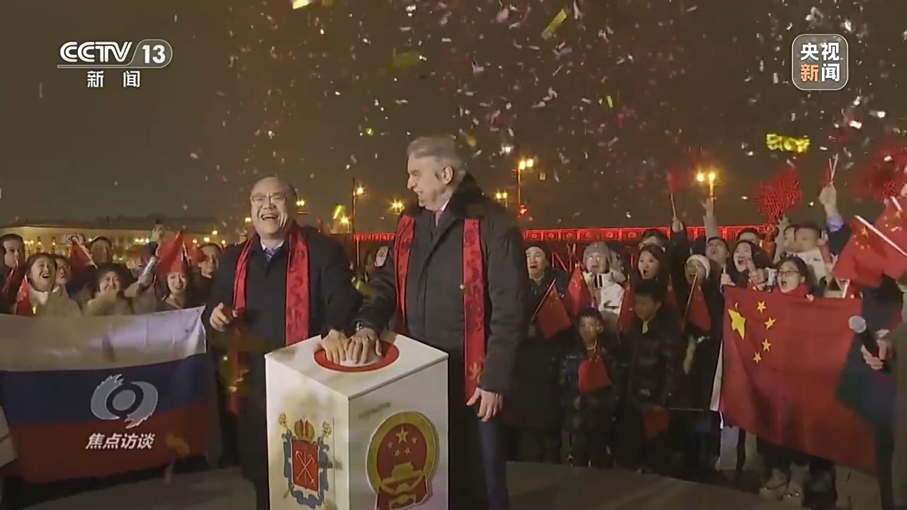 在俄羅斯第二大城市圣彼得堡,橫跨涅瓦河的冬宮橋在《春節(jié)序曲》的悠揚旋律中徐徐開啟。橋身燈光閃亮的“中國紅”映照在河面上,給寒冷的冬夜帶來濃濃暖意和喜慶氣息,這是圣彼得堡首次為外國節(jié)日開橋。