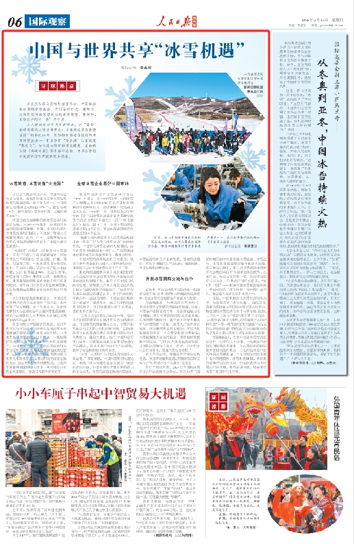 從人潮涌動(dòng)的室內(nèi)外滑雪場(chǎng),到“圈粉”全球游客的冰雪旅游景點(diǎn);從滿(mǎn)載冰雪裝備駛出國(guó)門(mén)的中歐班列,到紛紛加碼對(duì)華投資的外國(guó)冰雪企業(yè)……中國(guó)冰雪“冷資源”正在迸發(fā)“熱效應(yīng)”,為全球冰雪市場(chǎng)帶來(lái)暖意。正如新加坡《海峽時(shí)報(bào)》等外媒評(píng)論稱(chēng),中國(guó)冰雪經(jīng)濟(jì)發(fā)展將為世界提供更多機(jī)遇。