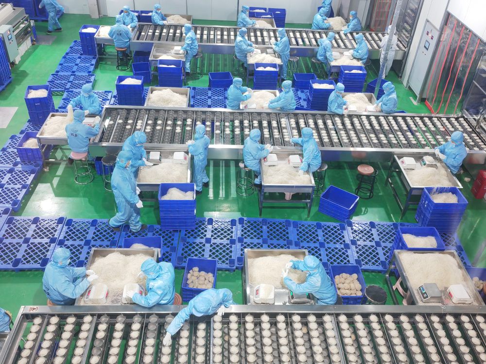 從河南引進高產(chǎn)紅薯品種、采購精深加工設備、搭建電商銷售團隊、注冊“陳薯”品牌,一番操作下來,周寨村有了現(xiàn)代化的食品加工廠。進淀粉、攪拌、定型、蒸箱熟化、掛桿……如今,記者走進生產(chǎn)車間,只見一條條生產(chǎn)線開足馬力。據(jù)了解,這里每天可生產(chǎn)數(shù)十萬桶紅薯粉。