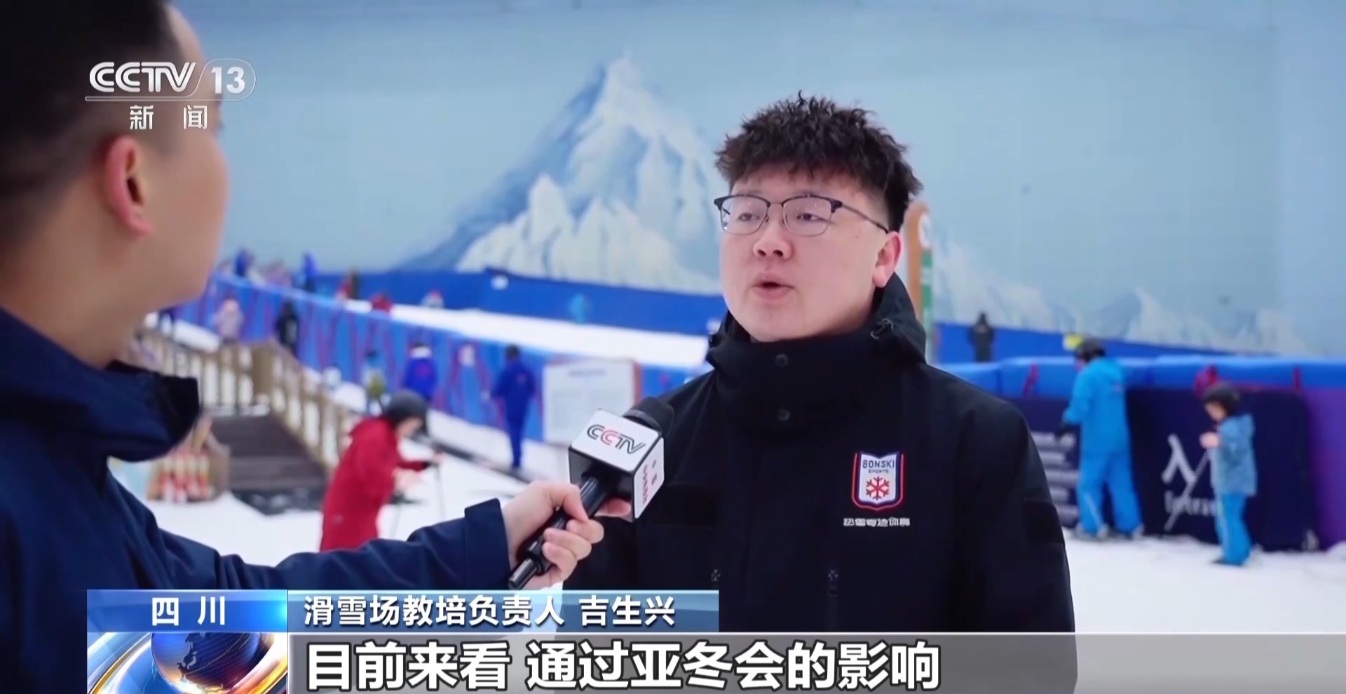 總臺記者 趙雄:我現(xiàn)在是在我國西南地區(qū)最大的室內(nèi)滑雪場,這里常年的溫度是零下6℃。在現(xiàn)場我們看到一共有六個不同的雪道,涵蓋了初、中、高各個不同的階段。不僅如此,在這里還有一個5000㎡的冰雪樂園。受亞冬會的影響,越來越多的人會選擇到這里來體驗(yàn)冰雪樂趣。