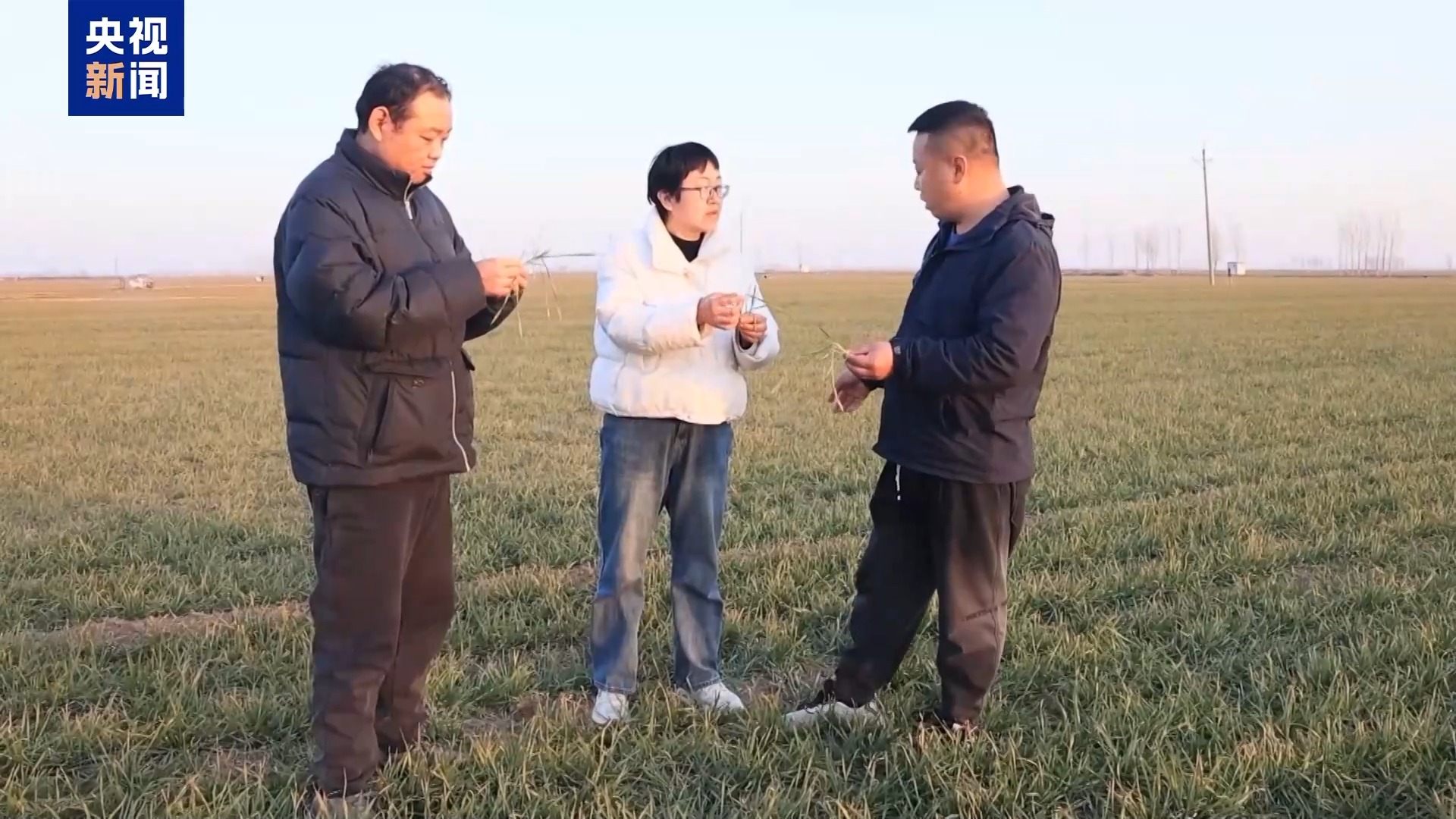在山東煙臺(tái)招遠(yuǎn)市一處麥田里,農(nóng)技專家正仔細(xì)查看小麥的生長(zhǎng)情況。